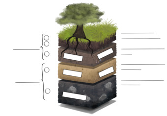 Das Bild verdeutlicht den typischen Aufbau des Bodens und die Zusammensetzung der jeweiligen Bodenhorizonte. Variante: farbig; unbeschriftet. Es gelten die Nutzungsbedingungen der Mediothek und Pixiothek.