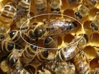 Bienenkönigin umringt von Arbeiterinnen