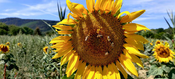 Flugbienen auf der Blüte einer Sonnenblume