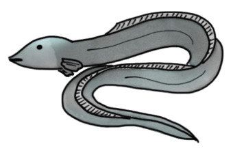 Das Bild zeigt einen gezeichneten Aal. Das Bild ist unter CC0 lizenziert und kann somit frei verwendet werden. Es ist neben weiteren Bildern auch hier zu finden: https://moodlelab.moodleschule.de/
