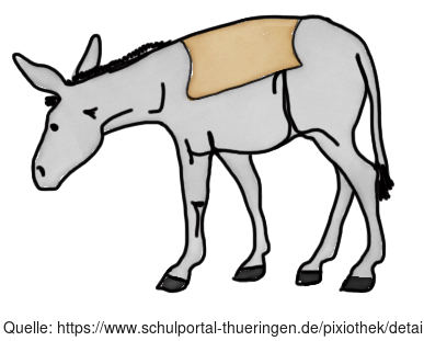 Das Bild zeigt einen gezeichneten Esel. Das Bild ist unter CC0 lizenziert und kann somit frei verwendet werden. Es ist neben weiteren Bildern auch hier zu finden: https://moodlelab.moodleschule.de/