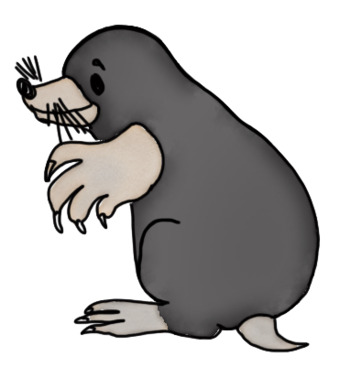 Das Bild zeigt einen gezeichneten Maulwurf. Das Bild ist unter CC0 lizenziert und kann somit frei verwendet werden. Es ist neben weiteren Bildern auch hier zu finden: https://moodlelab.moodlesc​​​​hule.de/