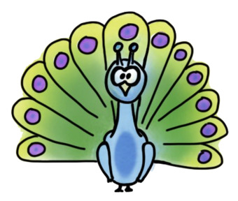 Das Bild zeigt einen gezeichneten Pfau. Das Bild ist unter CC0 lizenziert und kann somit frei verwendet werden. Es ist neben weiteren Bildern auch hier zu finden: https://moodlelab.moodleschule.de/