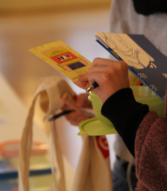 Das Bild ist Teil der Serie „Veranstaltungen“. Es zeigt Teilnehmer beim Betrachten von Informationsmaterialien bzw. Arbeitsmaterialien. Es gelten die Nutzungsbedingungen der Mediothek und Pixiothek.