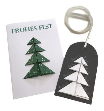 Das Bild ist Teil der Serie „Weihnacht“. Es zeigt eine Karte mit gebasteltem Faltweihnachtsbaum. Es gelten die Nutzungsbedingungen der Mediothek und Pixiothek.