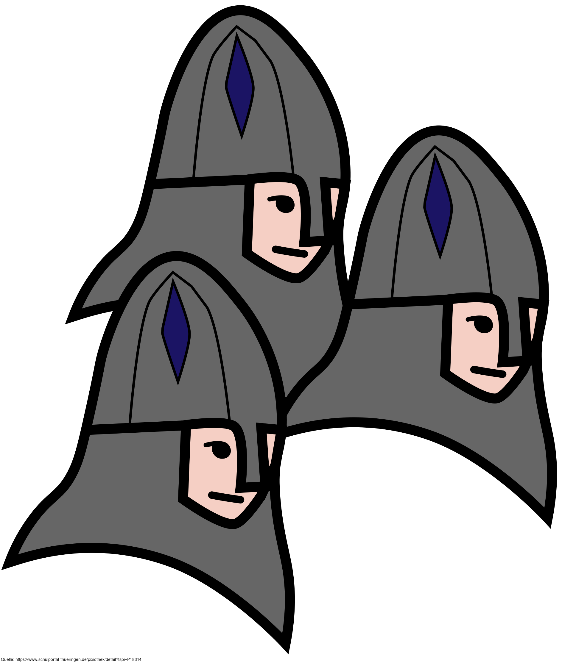 Das Bild zeigt drei gezeichnete Ritter, die freundlich blicken. Es stammt aus dem Projekt "Didactica Bavaria Bohemia" - Materialpakete daraus siehe "Verwandte Medien (Auswahl)". Das Bild ist unter CC0 lizenziert und kann somit frei verwendet werden.