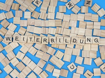 Aus Buchstaben wurde das Wort "Weiterbildung" gelegt. Es gelten die Nutzungsbedingungen der Mediothek und Pixiothek.
