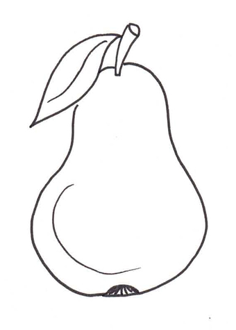 Das Bild zeigt eine gezeichnete Birne (s/w). Es gehört zur Serie "Ernährungspyramide zum Basteln und Gestalten" und findet u.a. im gleichnamigen Lernobjekt unter https://www.schulportal-thueringen.de/web/guest/media/detail?tspi=18517 Verwendung. Es gelten die Nutzungsbedingungen der Mediothek und Pixiothek.