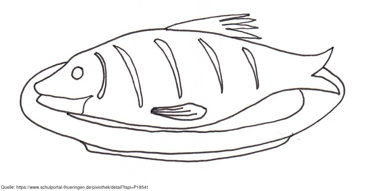 Das Bild zeigt einen gezeichneten Fisch (s/w). Es gehört zur Serie "Ernährungspyramide zum Basteln und Gestalten" und findet u.a. im gleichnamigen Lernobjekt unter https://www.schulportal-thueringen.de/web/guest/media/detail?tspi=18517 Verwendung. Es gelten die Nutzungsbedingungen der Mediothek und Pixiothek.