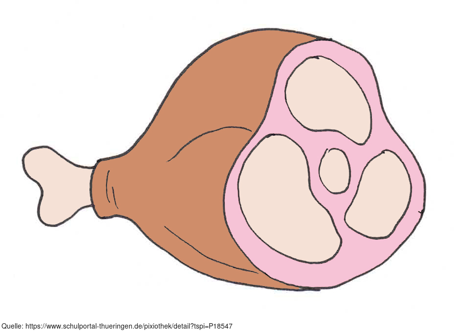 Das Bild zeigt ein gezeichnetes Stück Fleisch am Knochen (farbig). Es gehört zur Serie "Ernährungspyramide zum Basteln und Gestalten" und findet u.a. im gleichnamigen Lernobjekt unter https://www.schulportal-thueringen.de/web/guest/media/detail?tspi=18517 Verwendung. Es gelten die Nutzungsbedingungen der Mediothek und Pixiothek.