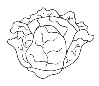 Das Bild zeigt einen gezeichneten Kopfsalat (s/w). Es gehört zur Serie "Ernährungspyramide zum Basteln und Gestalten" und findet u.a. im gleichnamigen Lernobjekt unter https://www.schulportal-thueringen.de/web/guest/media/detail?tspi=18517 Verwendung. Es gelten die Nutzungsbedingungen der Mediothek und Pixiothek.