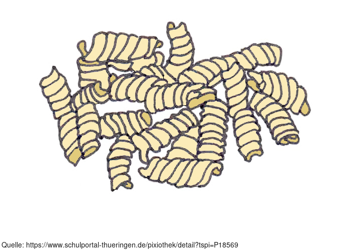 Das Bild zeigt gezeichnete Nudeln, Fusilli (farbig). Es gehört zur Serie "Ernährungspyramide zum Basteln und Gestalten" und findet u.a. im gleichnamigen Lernobjekt unter https://www.schulportal-thueringen.de/web/guest/media/detail?tspi=18517 Verwendung. Es gelten die Nutzungsbedingungen der Mediothek und Pixiothek.