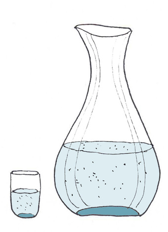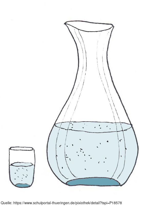 Das Bild zeigt eine gezeichnete Karaffe und ein gezeichnetes Glas mit Wasser (farbig). Es gehört zur Serie "Ernährungspyramide zum Basteln und Gestalten" und findet u.a. im gleichnamigen Lernobjekt unter https://www.schulportal-thueringen.de/web/guest/media/detail?tspi=18517 Verwendung. Es gelten die Nutzungsbedingungen der Mediothek und Pixiothek.