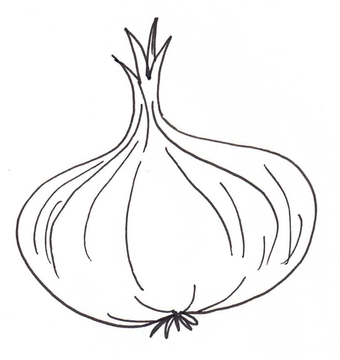 Das Bild zeigt eine gezeichnete Zwiebel (s/w). Es gehört zur Serie "Ernährungspyramide zum Basteln und Gestalten" und findet u.a. im gleichnamigen Lernobjekt unter https://www.schulportal-thueringen.de/web/guest/media/detail?tspi=18517 Verwendung. Es gelten die Nutzungsbedingungen der Mediothek und Pixiothek.