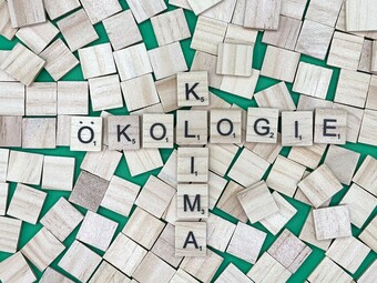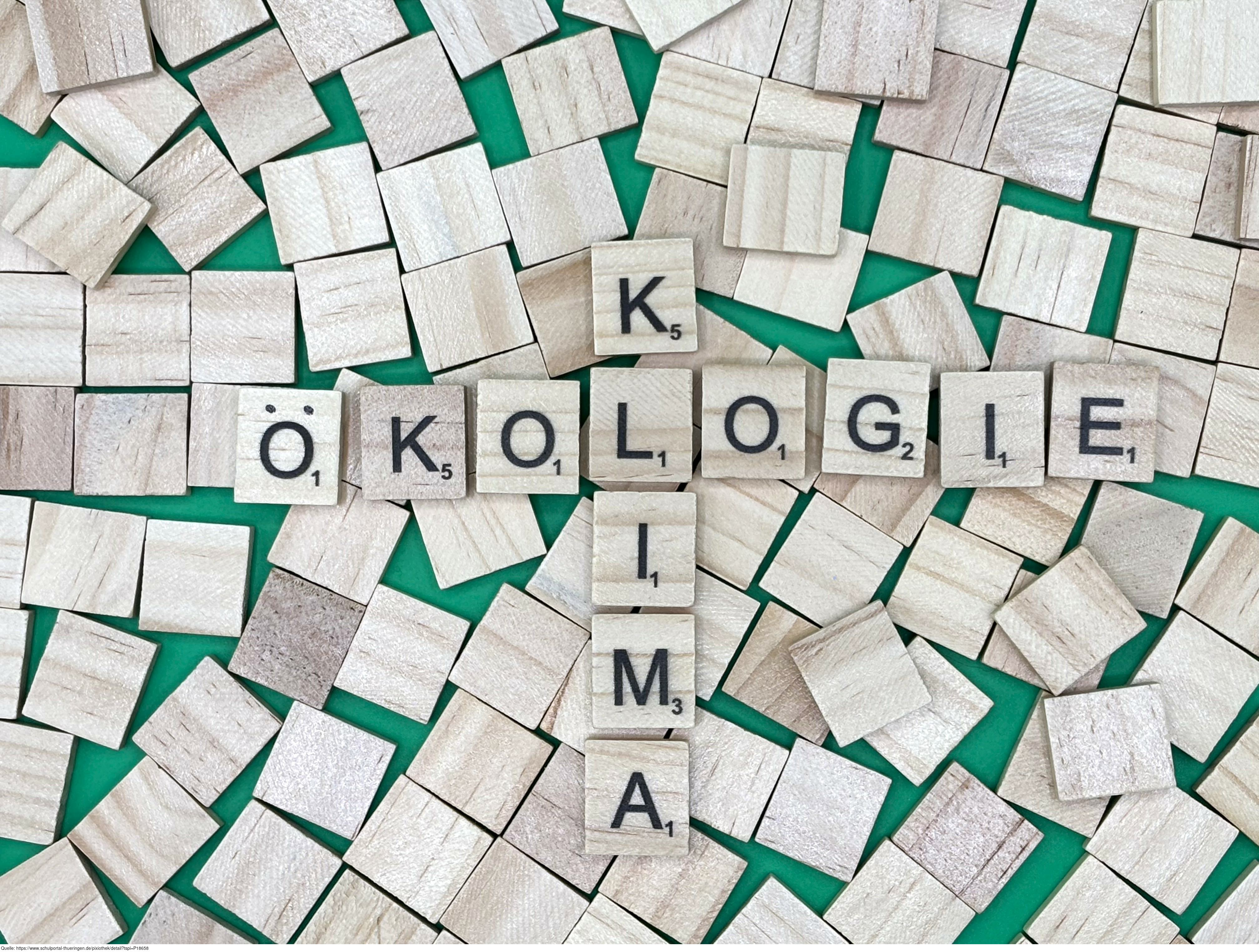 Aus Buchstaben wurden die Begriffe "Ökologie" und "Klima" gelegt. Es gelten die Nutzungsbedingungen der Mediothek und Pixiothek.