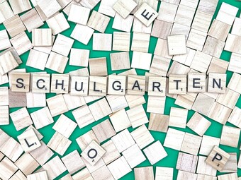 Aus Buchstaben wurde der Begriff „Schulgarten" gelegt. Es gelten die Nutzungsbedingungen der Mediothek und Pixiothek.