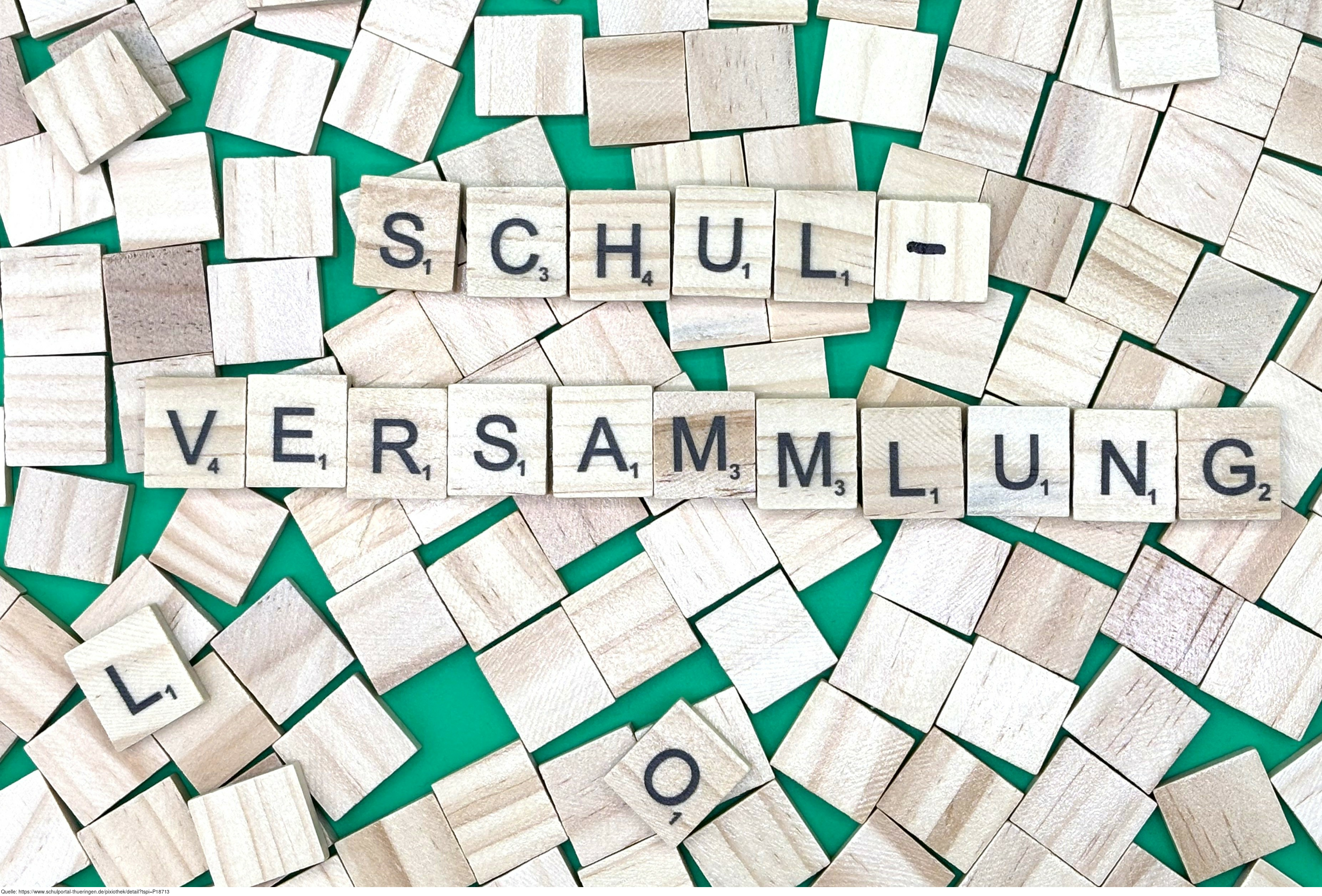 Aus Buchstaben wurde der Begriff „Schulschluss" gelegt. Es gelten die Nutzungsbedingungen der Mediothek und Pixiothek.