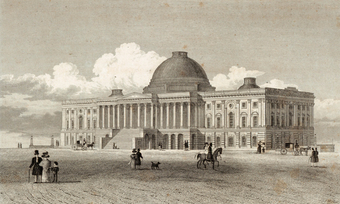 Die Abbildung zeigt das Capitol in Washington in einer historischen Ansicht. Das Bild stammt aus Band 1 von „Meyer's Universum oder Abbildung und Beschreibung des Sehenswerthesten und Merkwürdigsten der Natur und Kunst auf der ganzen Erde“, erschienen 1833. Das Digitalisat ist bei der Universitäts- und Landesbibliothek Düsseldorf unter https://nbn-resolving.org/urn:nbn:de:hbz:061:1-621229 abrufbar. Das Gesamtwerk wurde unter Public Domain Mark 1.0 Universell lizenziert, ist somit gemeinfrei und kann frei verwendet werden.