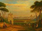 Die Abbildung zeigt einen Blick über die Tiberbrücke auf die Engelsburg (Castel Sant'Angelo), die Peterskirche und den Vatikan in einer historischen Ansicht. Das Bild stammt aus Band 1 von „Meyer's Universum oder Abbildung und Beschreibung des Sehenswerthesten und Merkwürdigsten der Natur und Kunst auf der ganzen Erde“, erschienen 1833. Das Digitalisat ist bei der Universitäts- und Landesbibliothek Düsseldorf unter https://nbn-resolving.org/urn:nbn:de:hbz:061:1-621229 abrufbar. Das Gesamtwerk wurde unter Public Domain Mark 1.0 Universell lizenziert, ist somit gemeinfrei und kann frei verwendet werden. Diese Bildvariante wurde mittels KI (Copilot) nachbearbeitet und coloriert.