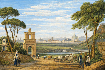Landschaft bei Rom mit Blick auf St Peter (coloriert)