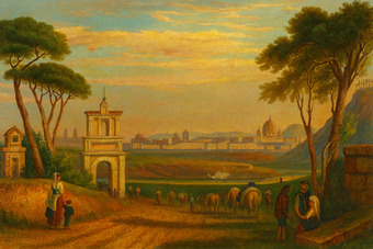 Landschaft bei Rom mit Blick auf St Peter (coloriert)