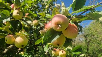 Das Bild zeigt Äpfel am Zweig auf dem ApfelGut Erfurt. Es gelten die Nutzungsbedingungen der Mediothek und Pixiothek.