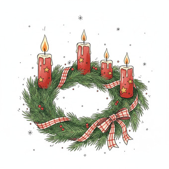 Das Bild zeigt einen gezeichneten Adventskranz. Das Bild wurde mittels einer KI (Gemini) erstellt und ist unter CC0 lizenziert. Weitere Bilder aus Herrn Emrich-Försters Bild-Archiv findet man hier: https://pix.foerster.rocks/