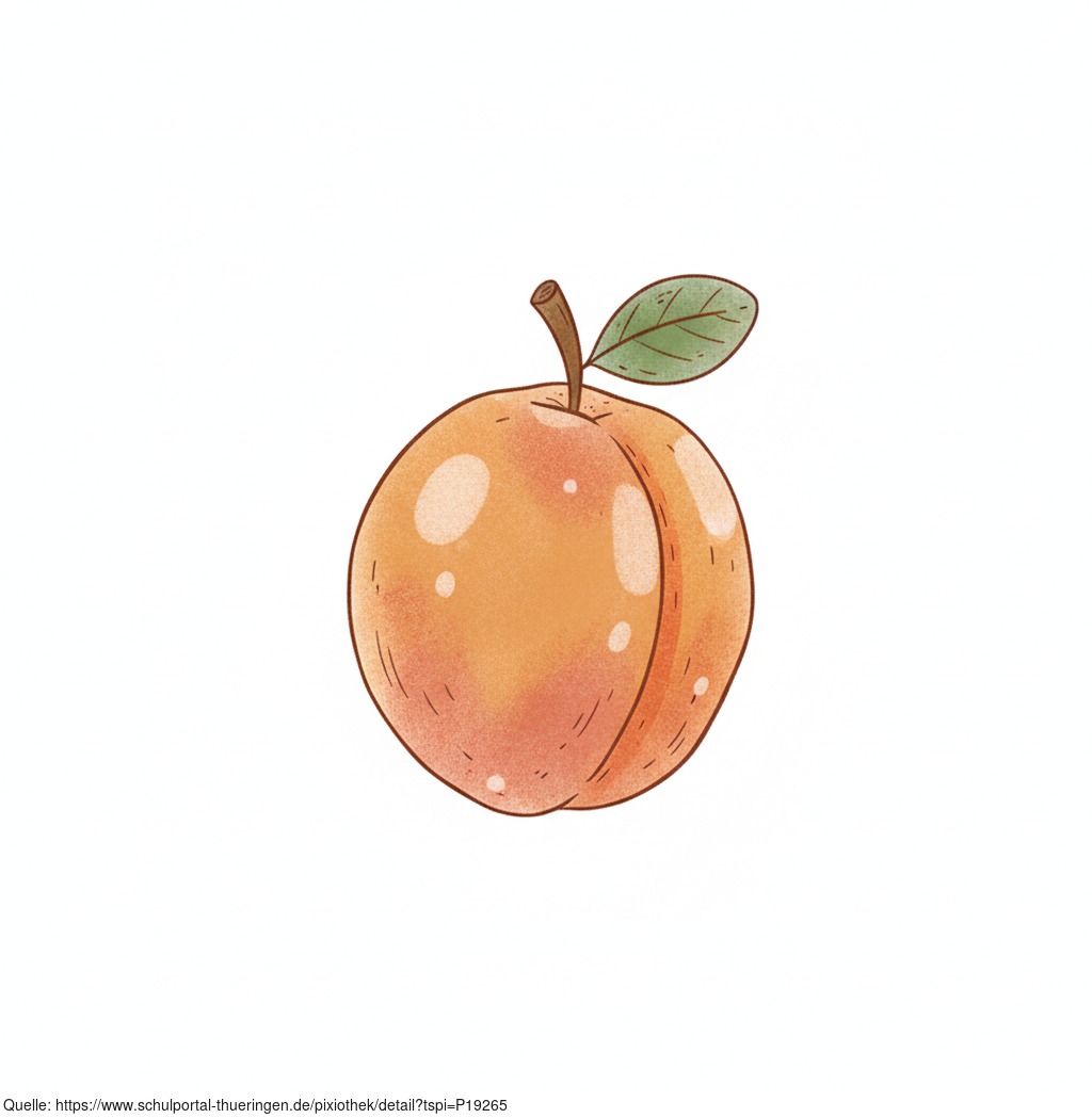 Das Bild zeigt eine gezeichnete Aprikose. Das Bild wurde mittels einer KI (Gemini) erstellt und ist unter CC0 lizenziert. Weitere Bilder aus Herrn Emrich-Försters Bild-Archiv findet man hier: https://pix.foerster.rocks/