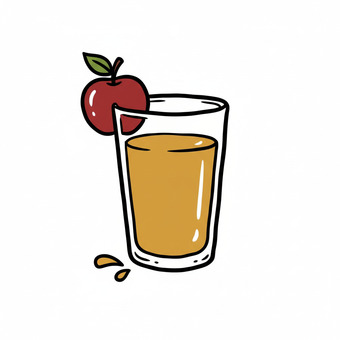 Das Bild zeigt ein gezeichnetes Motiv zum Begriff Apfelsaft. Das Bild wurde mittels einer KI (Gemini) erstellt und ist unter CC0 lizenziert. Weitere Bilder aus Herrn Emrich-Försters Bild-Archiv findet man hier: https://pix.foerster.rocks/