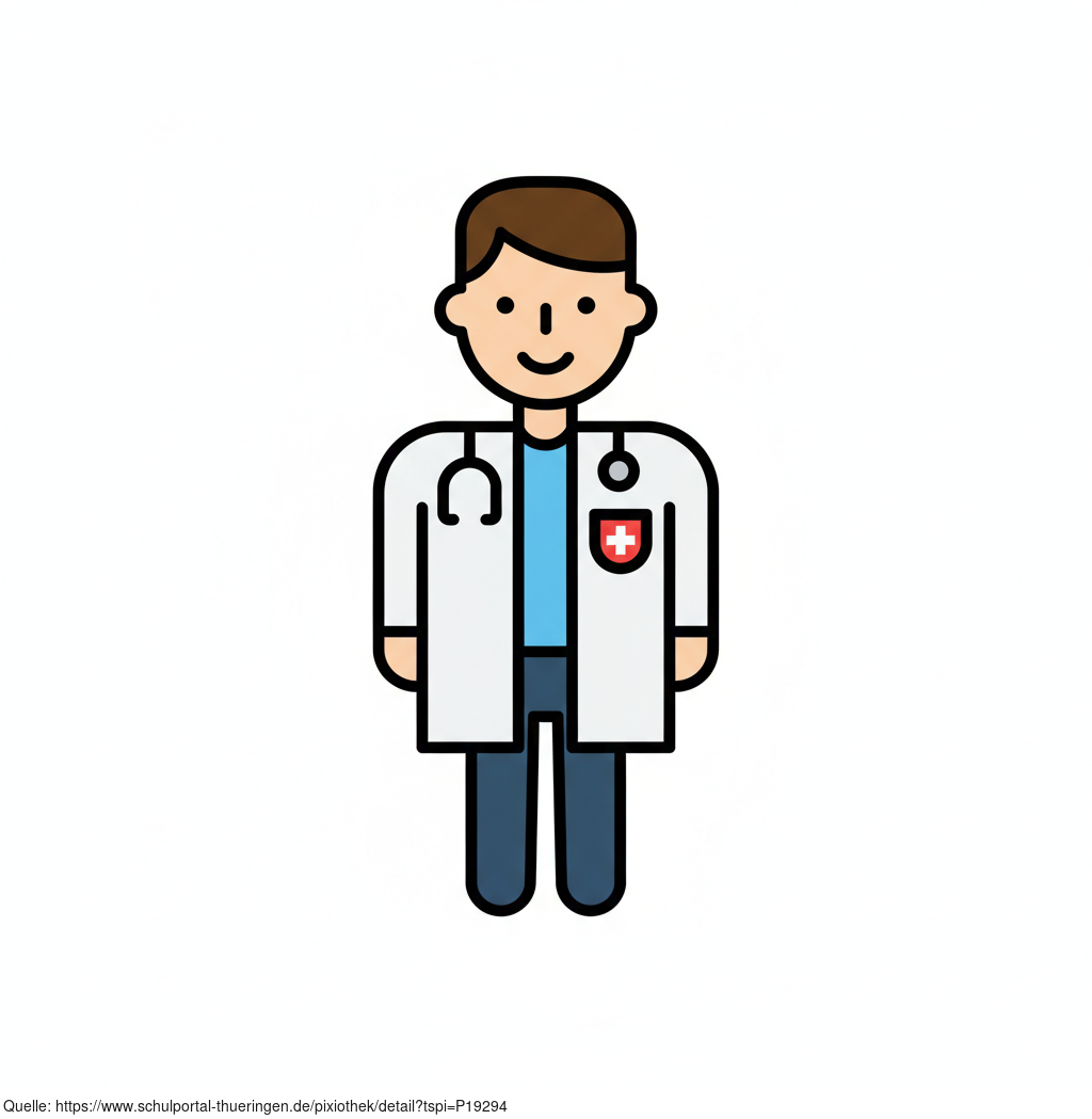Das Bild zeigt einen gezeichneten Arzt mit Stethoskop. Das Bild wurde mittels einer KI (Gemini) erstellt und ist unter CC0 lizenziert. Weitere Bilder aus Herrn Emrich-Försters Bild-Archiv findet man hier: https://pix.foerster.rocks​​​​​/