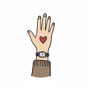 Das Bild zeigt einen gezeichneten Arm mit einer Armbanduhr. Auf dem Handrücken befindet sich ein Herz bzw. Herz-Tattoo. Das Bild wurde mittels einer KI (Gemini) erstellt und ist unter CC0 lizenziert. Weitere Bilder aus Herrn Emrich-Försters Bild-Archiv findet man hier: https://pix.foerster.rocks/