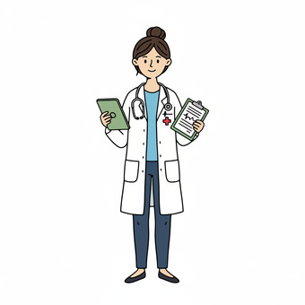 Das Bild zeigt eine gezeichnete Ärztin mit Stethoskop. Das Bild wurde mittels einer KI (Gemini) erstellt und ist unter CC0 lizenziert. Weitere Bilder aus Herrn Emrich-Försters Bild-Archiv findet man hier: https://pix.foerster.rocks​​​​​/