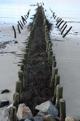 Spiekeroog: Holzbuhnen mit Reisig