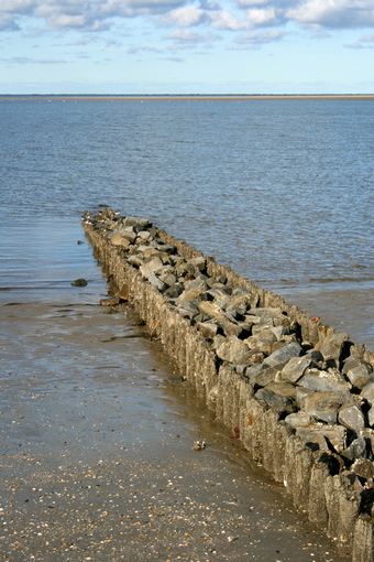 Spiekeroog: Holzbuhnen mit Steinbefestigung