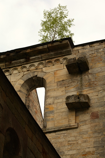 Klosterruine Paulinzella: Fenster, Mauer mit Baum