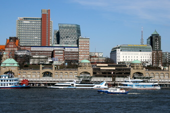 Das Foto gehört zur Serie "Hansestadt Hamburg". Es zeigt die Elbe mit Sicht auf die Landungsbrücken. Es gelten die Nutzungsbedingungen der Mediothek und Pixiothek.