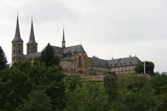 Das Foto gehört zur Serie "Bamberg". Die Altstadt der oberfränkischen Stadt Bamberg ist der größte weitgehend unversehrt erhaltene historische Stadtkern in Deutschland. Das Bild zeigt den Dom St. Michael. Es gelten die Nutzungsbedingungen der Mediothek und Pixiothek.