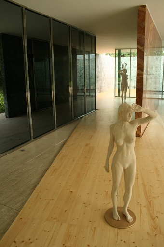 Barcelona-Pavillon: Georg Kolbes Skulptur "Der Morgen" in Sichtachse
