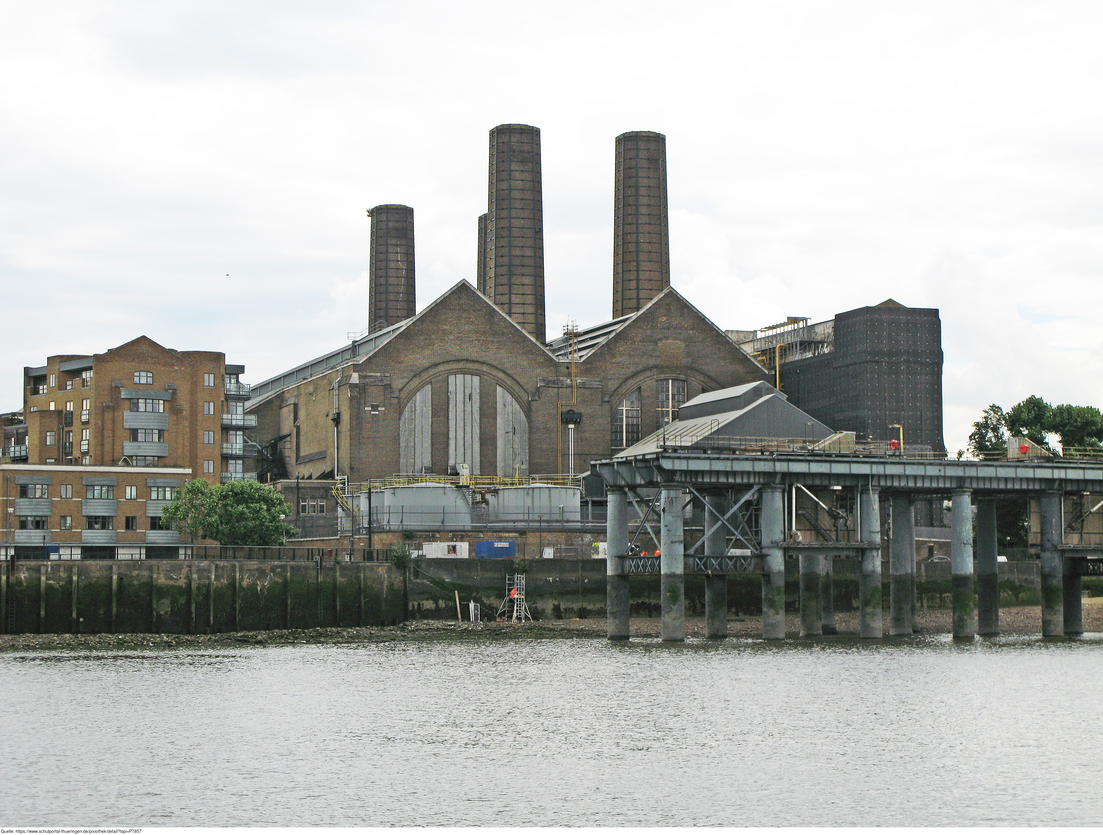 Das Foto gehört zur Serie London 2016. Es zeigt Greenwich Power Station, ein Kraftwerk zur Erzeugung von Elektroenergie. Es wurde ab 1902 mit Kohle betrieben und lieferte Strom für die Straßenbahnen (tramways) Londons. Heute ist es ein Reservekraftwerk und wird mit Gas betrieben. Es gelten die Nutzungsbedingungen der Mediothek und Pixiothek.
