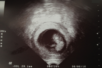 Ultraschallaufnahme eines menschlichen Embryos in der 10. Schwangerschaftswoche. Es gelten die Nutzungsbedingungen der Mediothek und Pixiothek.