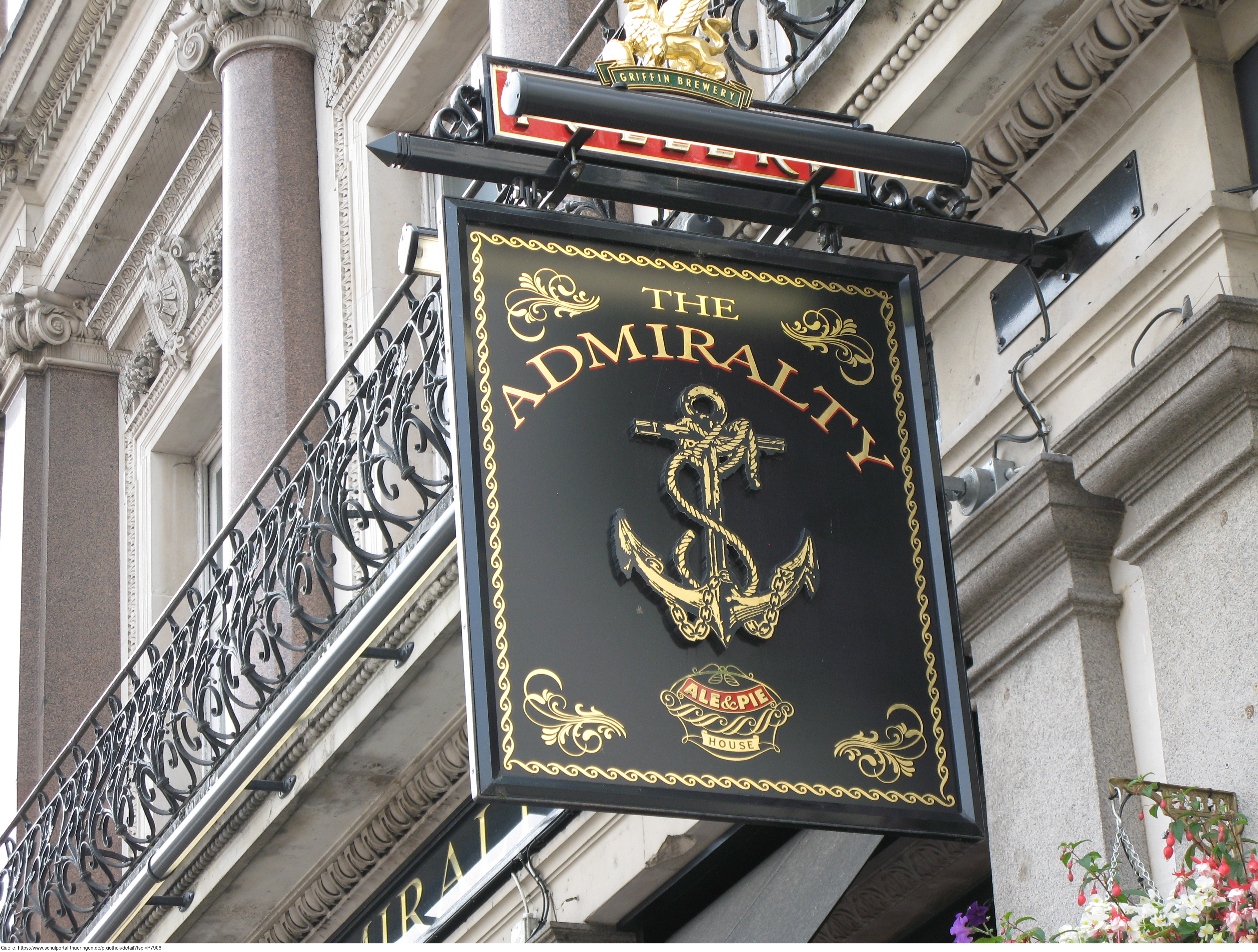 Das Foto gehört zur Serie London 2016. Es zeigt das Schild des Restaurants "The Admirality" unweit vom Trafalgar Square. Es gelten die Nutzungsbedingungen der Mediothek und Pixiothek.
