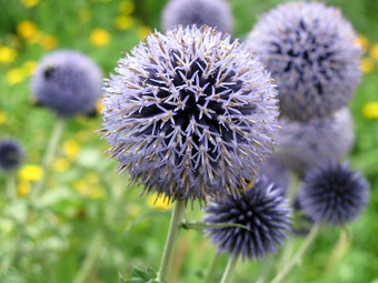 Das Foto gehört zur Serie Blumen im Garten. Es zeigt die Blüte einer Kugeldistel (Echinops ritro). Die Kugeldistel ist eine mehrjährige und anspruchslose Staude. Sie findet man in sonnigen Lagen und sie ist eine Bienenpflanze. Es gelten die Nutzungsbedingungen der Mediothek und Pixiothek.