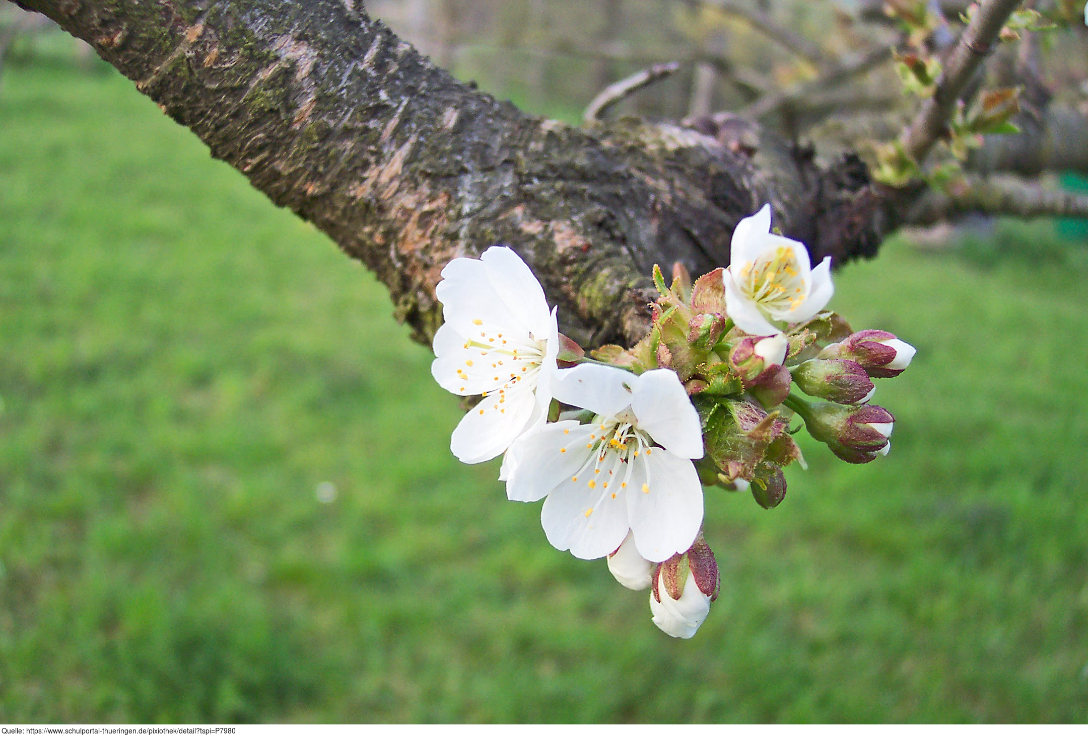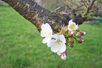 Das Foto gehört zur Serie Obstbäume. Es zeigt Kirschblüten der Süßkirsche. Es gelten die Nutzungsbedingungen der Mediothek und Pixiothek.