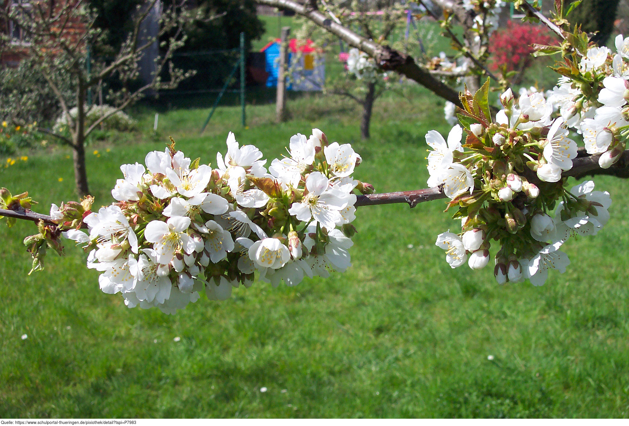 Das Foto gehört zur Serie Obstbäume. Es zeigt Kirschblüten der Süßkirsche. Es gelten die Nutzungsbedingungen der Mediothek und Pixiothek.