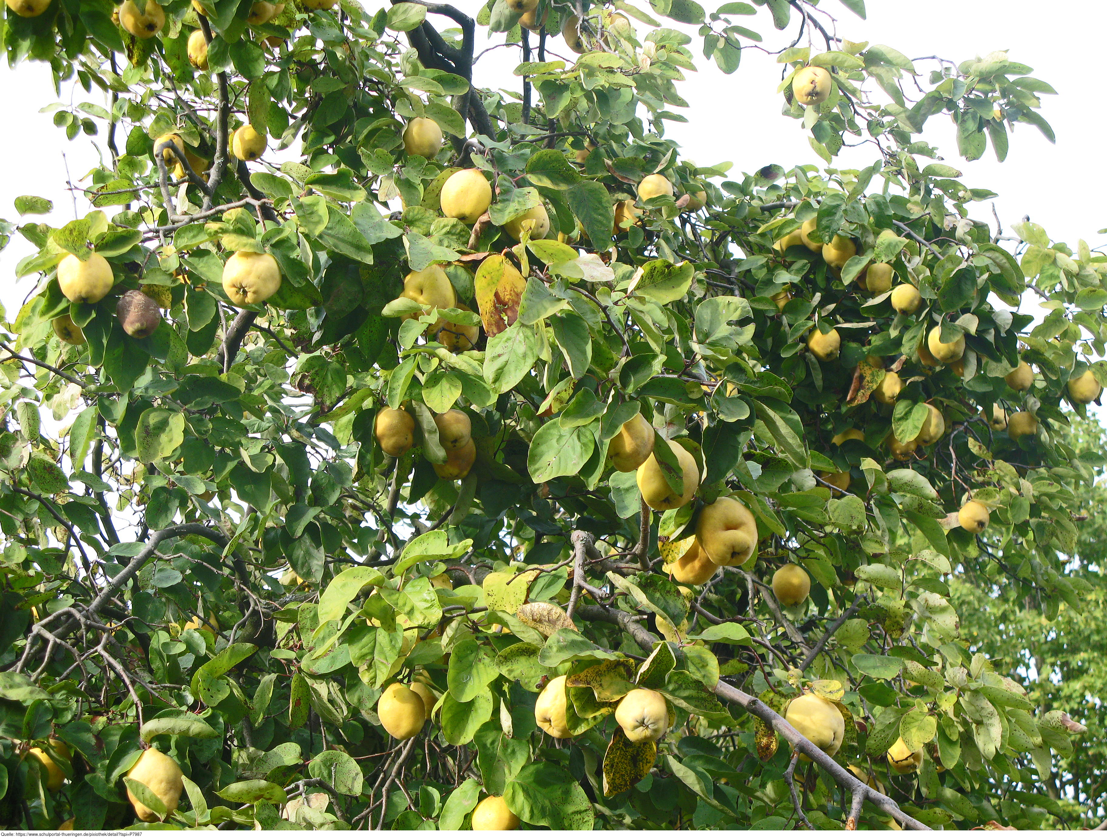 Das Foto gehört zur Serie Obstbäume. Es zeigt einen Quittenbaum mit Früchten. Es gelten die Nutzungsbedingungen der Mediothek und Pixiothek.