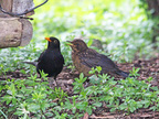 Amselmännchen und Jungvogel
