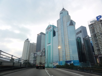 Das Foto gehört zur Serie "Hong Kong Trail". Es zeigt einen Teil der Skyline von Hong Kong, aufgenommen auf der Taxifahrt von Hong Kong Central an die Ostküste nach Tai Long Wan. Es gelten die Nutzungsbedingungen der Mediothek und Pixiothek.