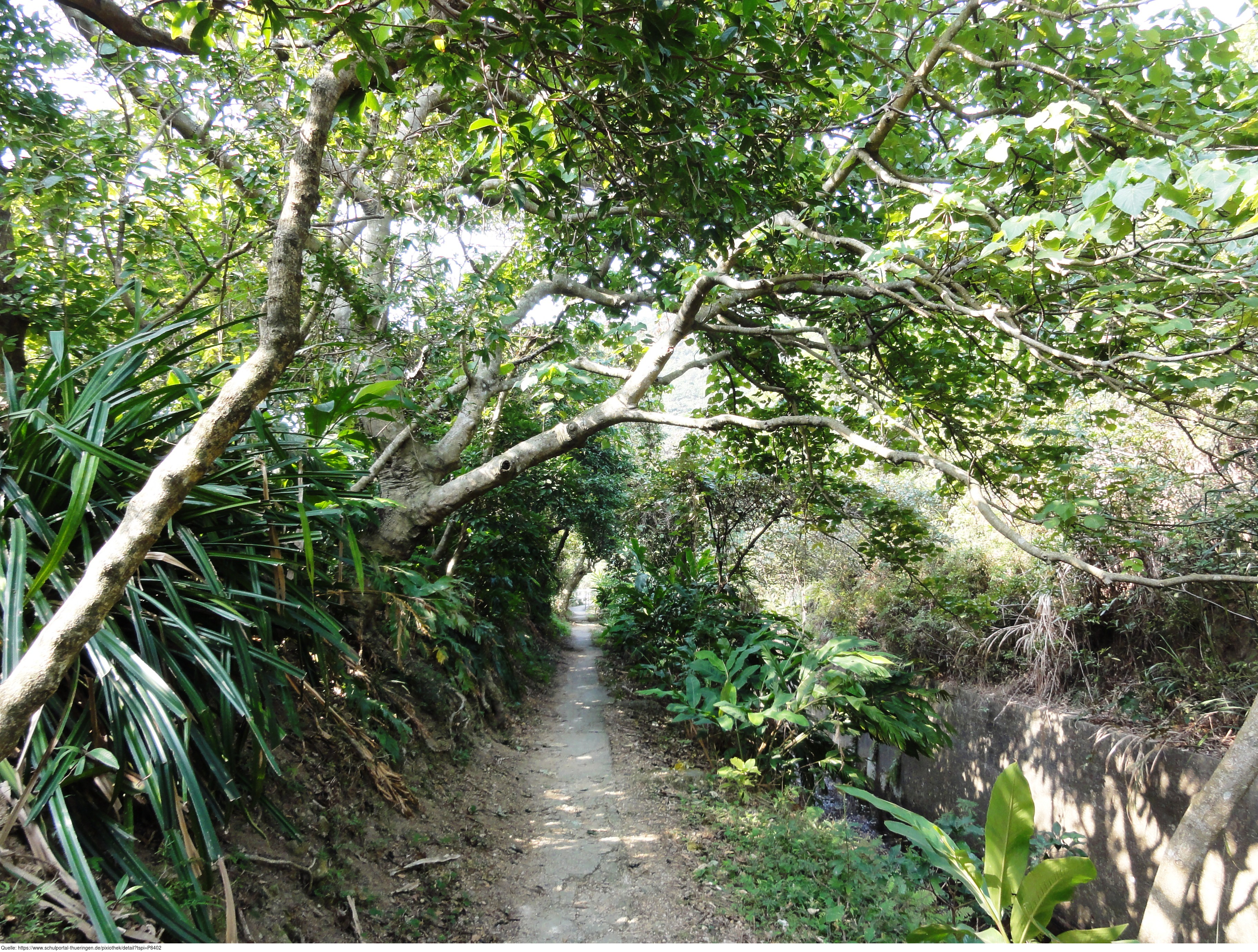 Das Foto gehört zur Serie "Hong Kong Trail". Es zeigt den Pfad durch tropische Wälder. Es gelten die Nutzungsbedingungen der Mediothek und Pixiothek.