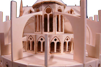 Das Foto gehört zur Serie "Modell Notre-Dame de Paris". Es zeigt eine Detailansicht des Modells. Es gelten die Nutzungsbedingungen der Mediothek und Pixiothek.