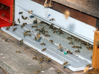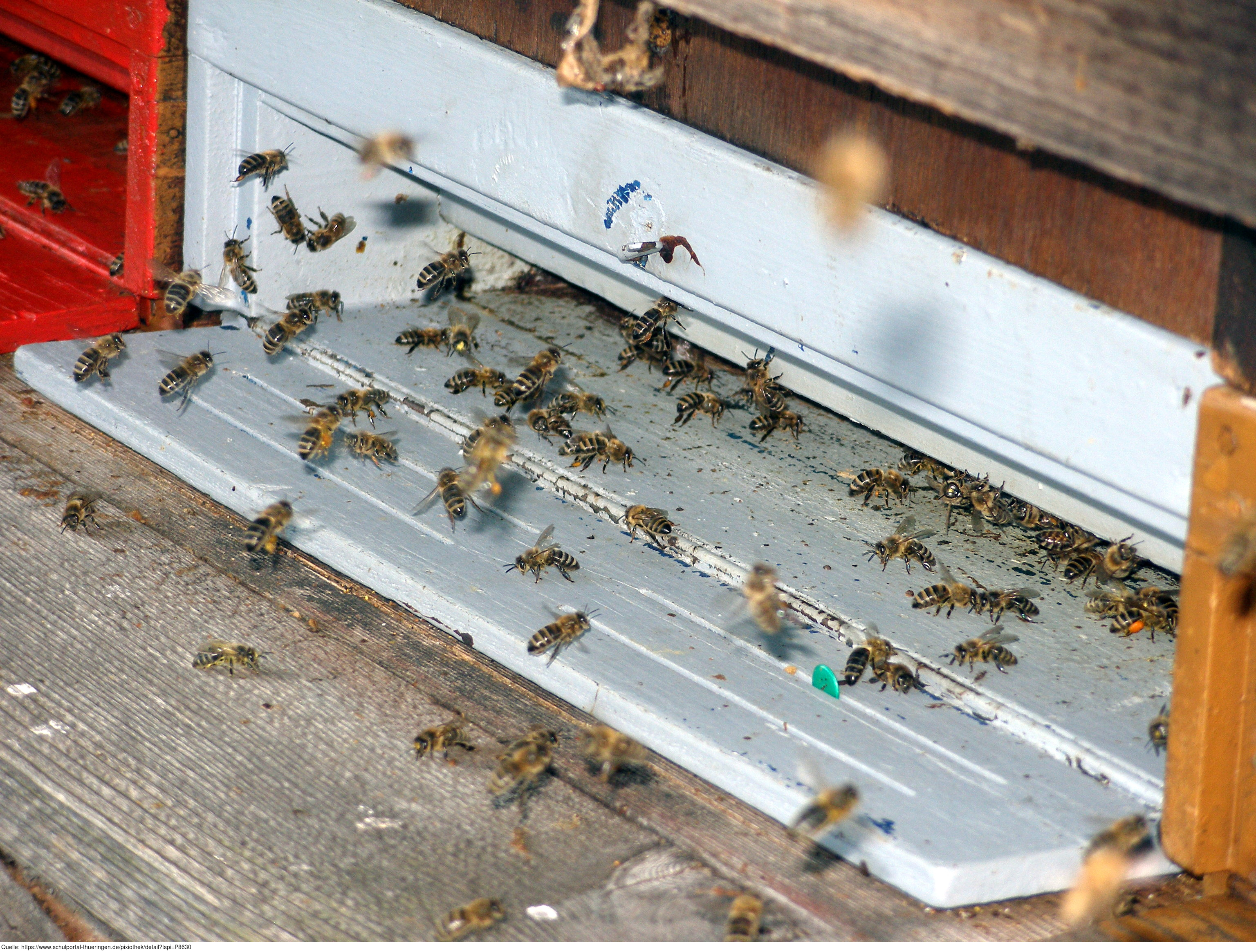 Das Foto gehört zur Serie "Insekten". Es zeigt eine Magazinbeute, die von Imkern als Behausung für ihre Bienenvölker eingesetzt wird und Bienen im Anflug auf ihren Bienenstock. Das Bild ist unter CC0 lizenziert und kann somit frei verwendet werden.